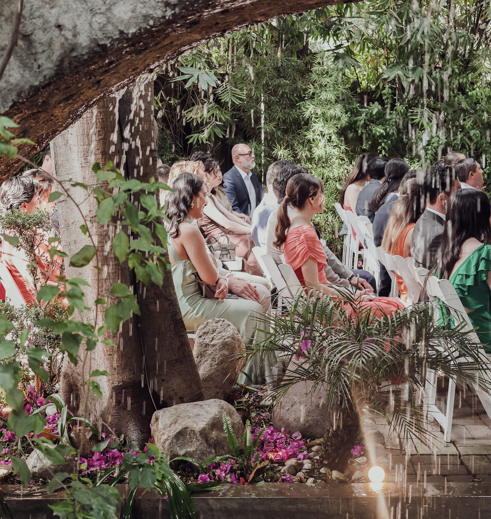 Este espacio combina arcos elegantes, cascadas de piedra y jardines que envuelven el venue. Con capacidad para 50 a 400 invitados, ofrece una atmósfera romántica, perfecta para celebraciones inolvidables.